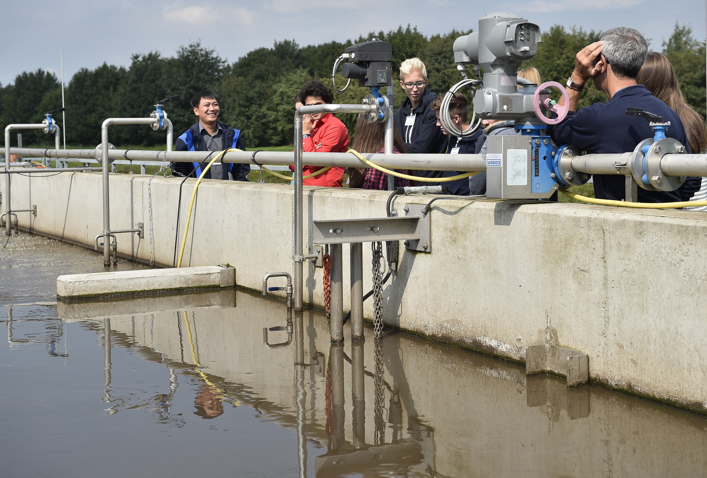 In Dinslaken besuchten die Teilnehmer das Technikum an der Kläranlage Emschermündung. In der Versuchsanlage der Emschergenossenschaft werden weitergehende Reinigungsstufen erprobt, die Station stellt die Basis für Untersuchungen zur technisch-wirtschaftlichen Optimierung der Kläranlagen von Emschergenossenschaft und Lippeverband dar, mit Schwerpunkten bei der Optimierung der Schlammbehandlung und der Sauerstoffeintragssysteme.