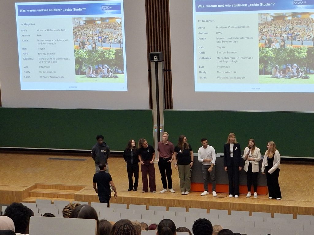 Dreizehn SchülerInnen unserer Oberstufe nutzten das Angebot, um einen Einblick in das Uni-Leben und die verschiedenen Studienfächer am Campus Duisburg zu erhalten.
