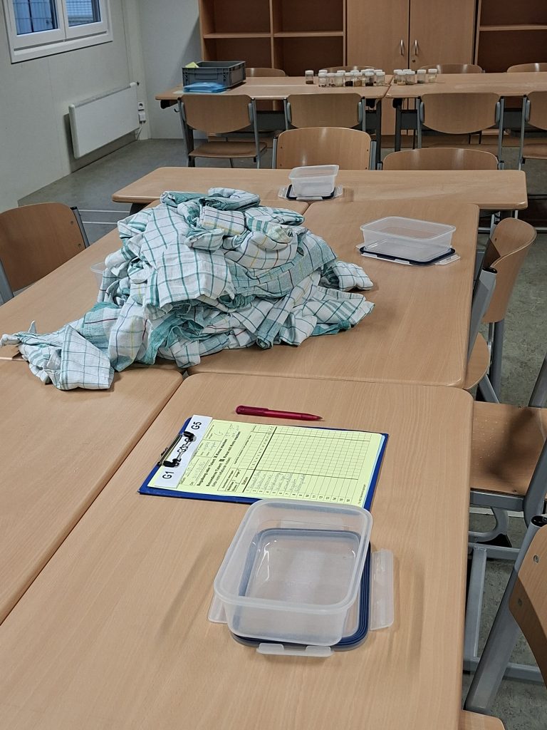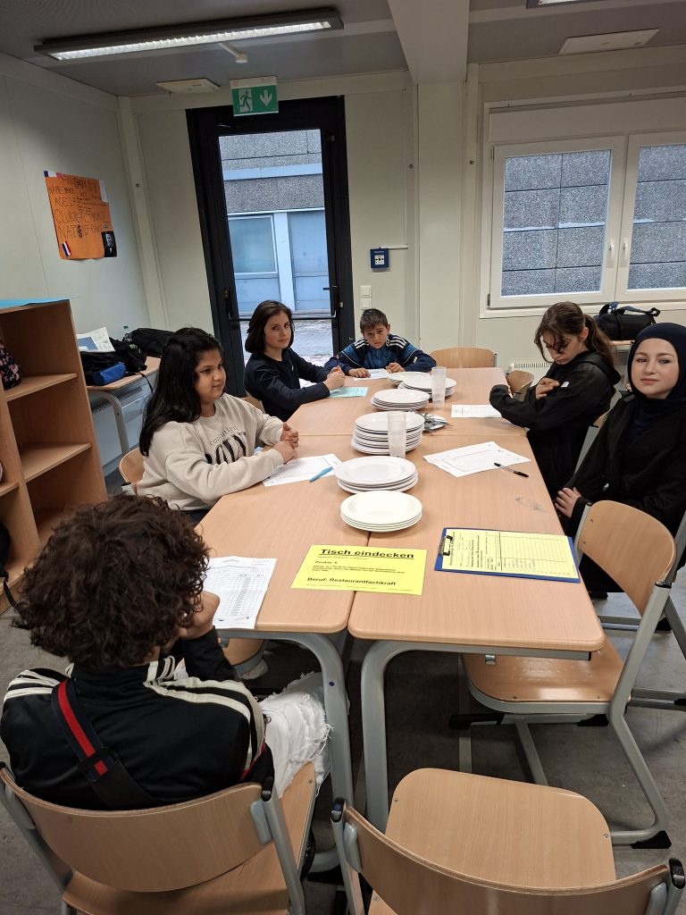 Tische eindecken, ein Dach bauen, Handtücher verpacken u.v.m. musste von den SchülerInnen bewältigt werden. Es war spannend zu erleben, wie ruhig und hochkonzentriert unser durchaus quirliger Jahrgang 7 die Aufgaben erledigte, versuchte das individuell beste Ergebnis zu erreichen und sich über das positive Feedback der MitarbeiterInnen freute.