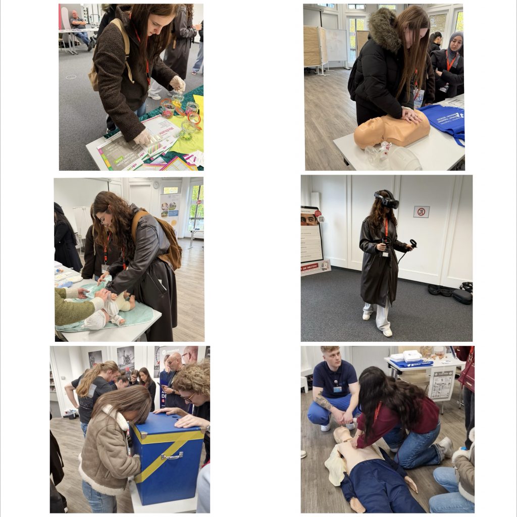 Der Pflegetag beim BIZ war wie eine kleine Berufsmesse rund um den Pflegeberuf. An verschiedenen Stationen konnten wir selbst ausprobieren, was man in der Pflege macht. Wir haben gelernt, wie man sich die Hände richtig desinfiziert, welche Schritte bei der Ersten Hilfe wichtig sind und sogar, wie man Babys richtig wickelt.