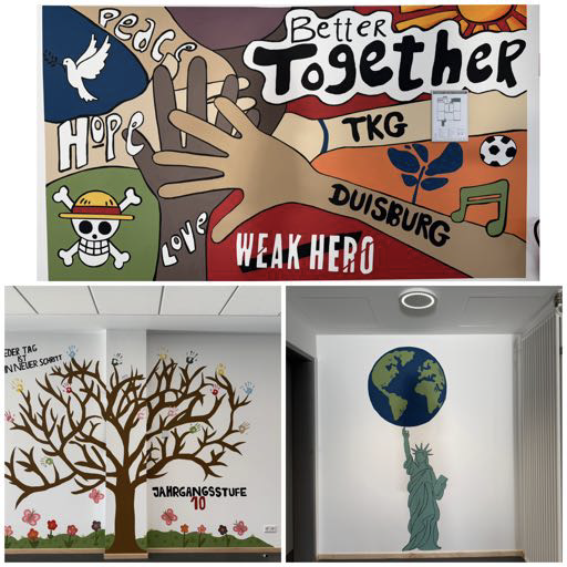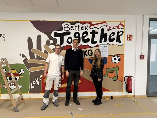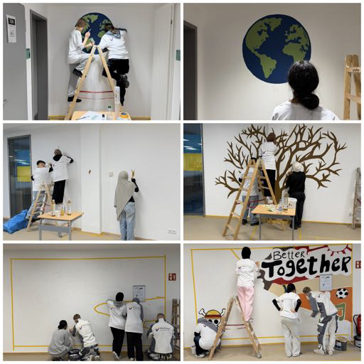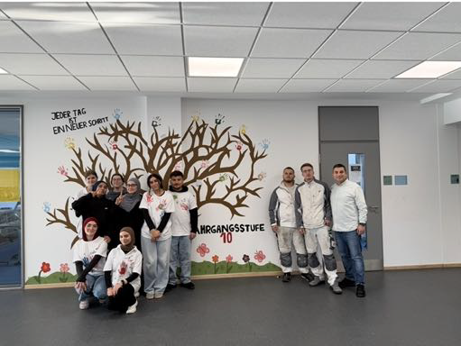 Mit viel Kreativität, handwerklichem Geschick und Teamarbeit entstanden eindrucksvolle Bilder, die die Atmosphäre des Flurs nachhaltig verändern. Das Projekt bot nicht nur wertvolle Einblicke in einen handwerklichen Beruf, sondern zeigte auch, wie junge Menschen mit Farbe und Gestaltung eine starke Botschaft vermitteln können.