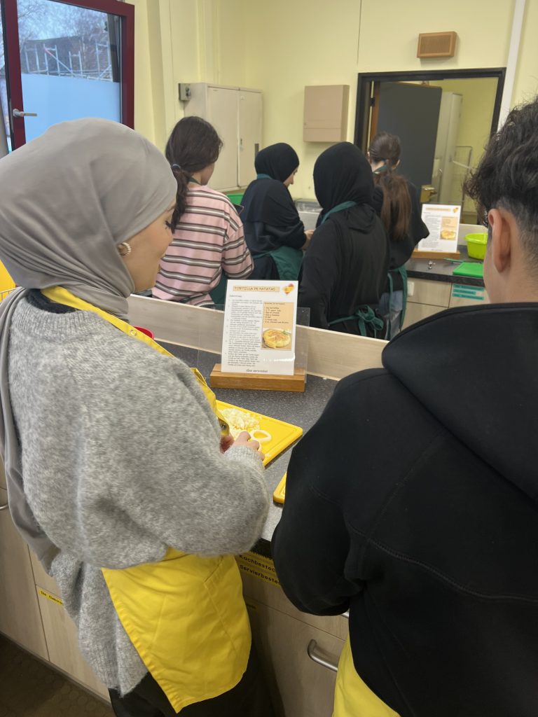 Auf dem Speiseplan standen Tortilla de Patatas und Pimientos de Padrón – klassische Spezialitäten, die man in Spanien gerne in geselliger Runde isst. Mit viel Motivation wurde geschnippelt, gebraten und gewürzt und der Spaß kam dabei nicht zu kurz.