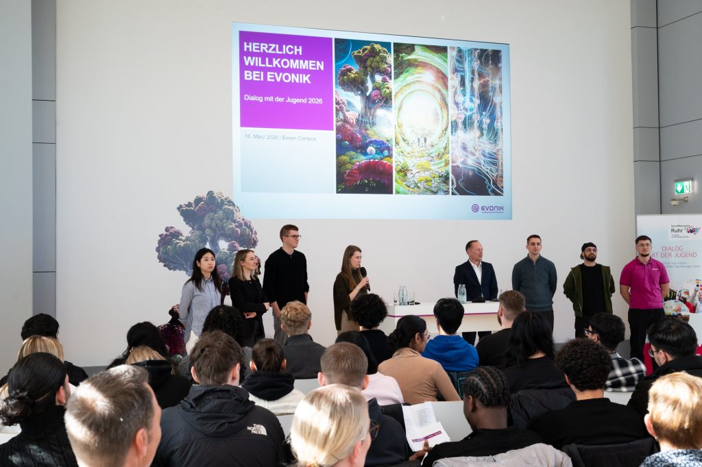 Am 16.03.2026 war einer unserer Erdkunde Grundkurse der EF im Rahmen des von der TalentMetropole organisierten Dialogs mit der Jugend zu Gast bei Evonik Industries in Essen.